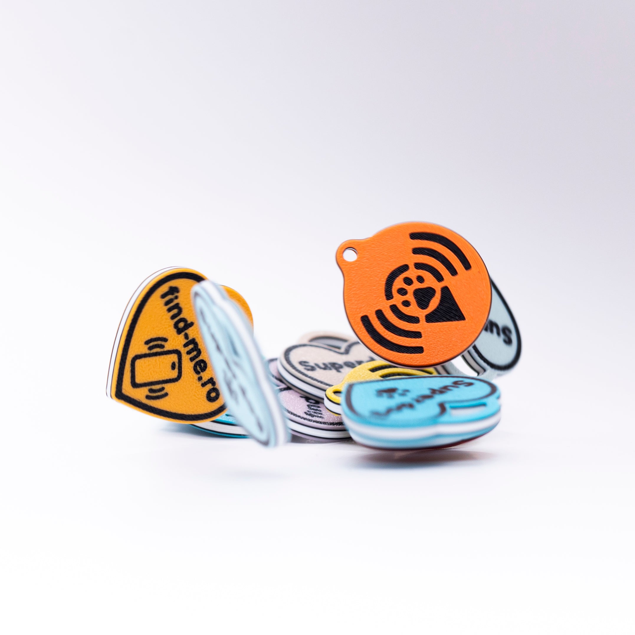 NFC nativ — orice iPhone sau Android modern scaneaza direct, fara aplicatie. Cel care gaseste blanosul nu trebuie sa instaleze nimic.
