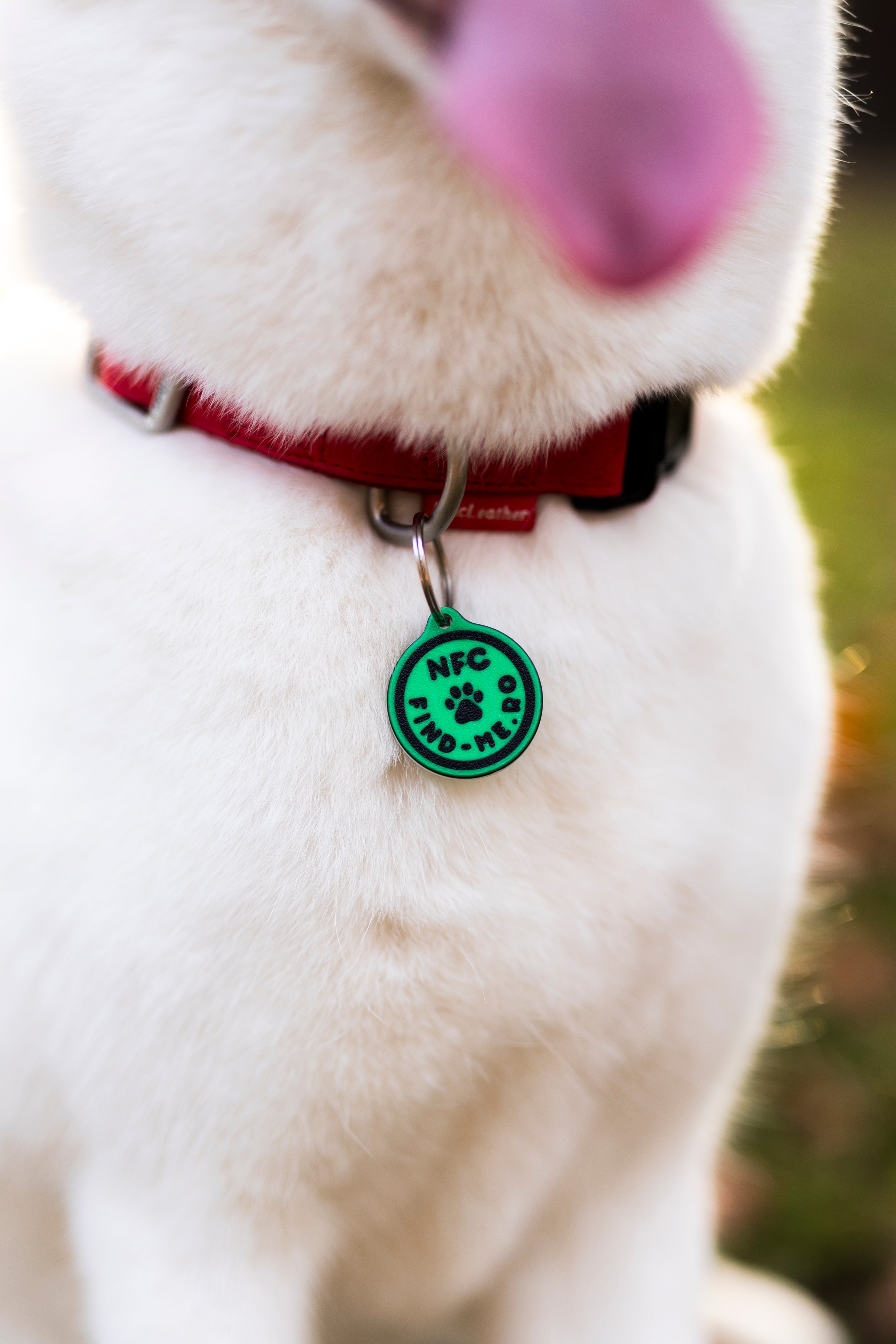 Orice telefon modern poate scana medalionul NFC — fara aplicatie instalata. Cel care gaseste blanosul vede imediat profilul si poate suna sau trimite un mesaj WhatsApp direct, cu un singur tap.